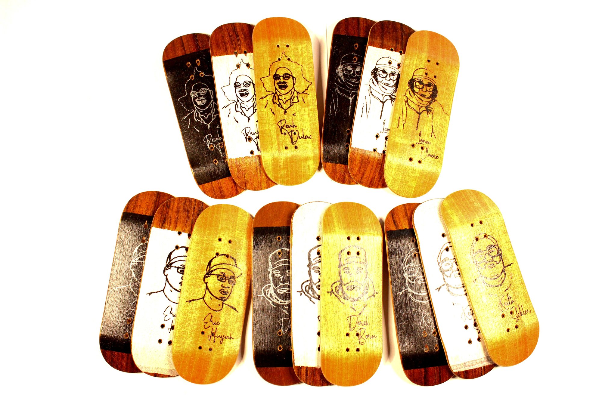 Each deck is hydrolic-pressed in a professionnal metal mold, cutted with precision and finished by hand. This is a screen printed serie made with love! Each deck includes one sheet of FBS tape.(exclusive on websites purchases)